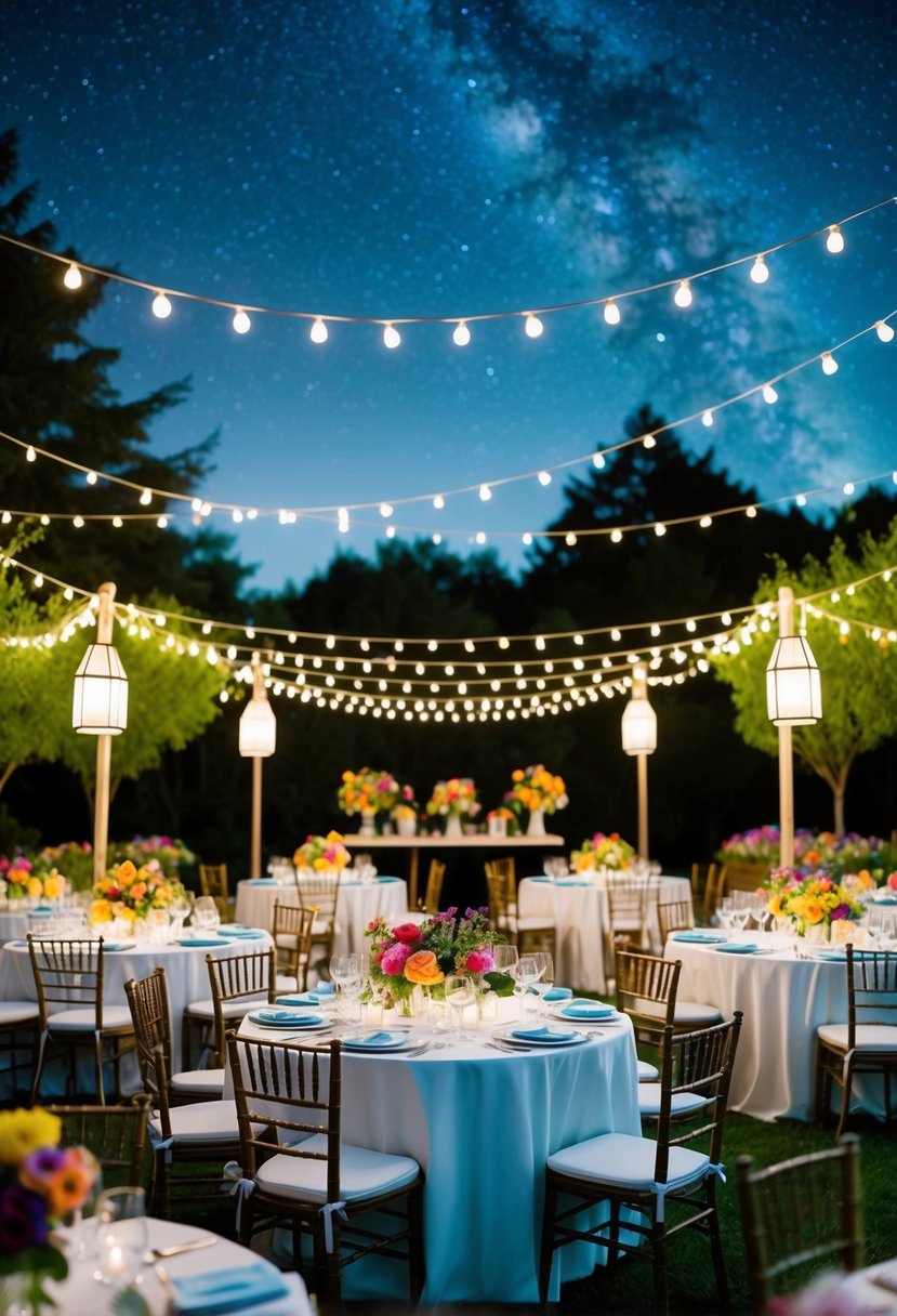 This setup works well for both casual gatherings and special celebrations. Your guests will enjoy the beautiful ambiance that a string light canopy provides.