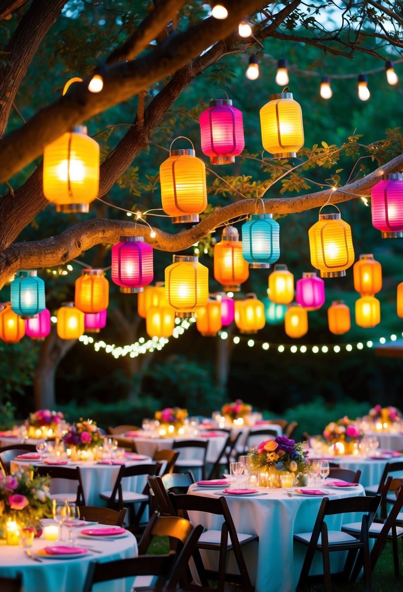 You can find these lanterns in many styles, from delicate floral patterns to classic Asian designs. Hang them from tree branches or along pathways to guide your guests.